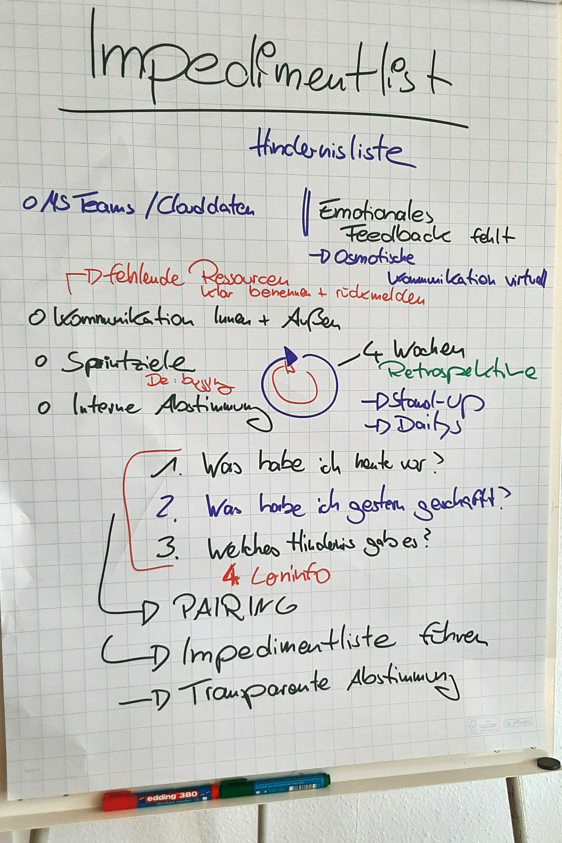 a) Erstellung einer Impedimentliste zur Erfassung von Störungen in den Abläufen: